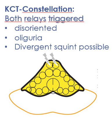Consternation: When the collecting ducts of both kidneys are affected. The leading symptoms are strong water retention in body tissues, oliguria, anuria, a sense of disorientation and strabismus divergens (diverging squint).
