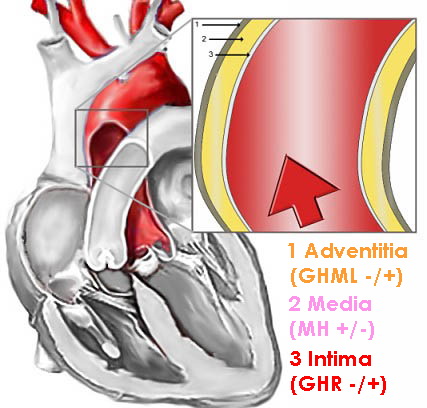 Erhöhter Blutfluss und -druck durch muskuläre Erweiterung des Lumens der Koronararterien und ggf Abbauprozesse (Ulzeration) der inneren Blutgefäßwände. Typische Symptome sind einschießender stechender Schmerz, Brustenge (Angina Pectoris) und möglicherweise depressive Verfassung (siehe Revierbereichs-Konstellationen/Hormonwaage). Bradykardie und Extrasystolen sind möglich.